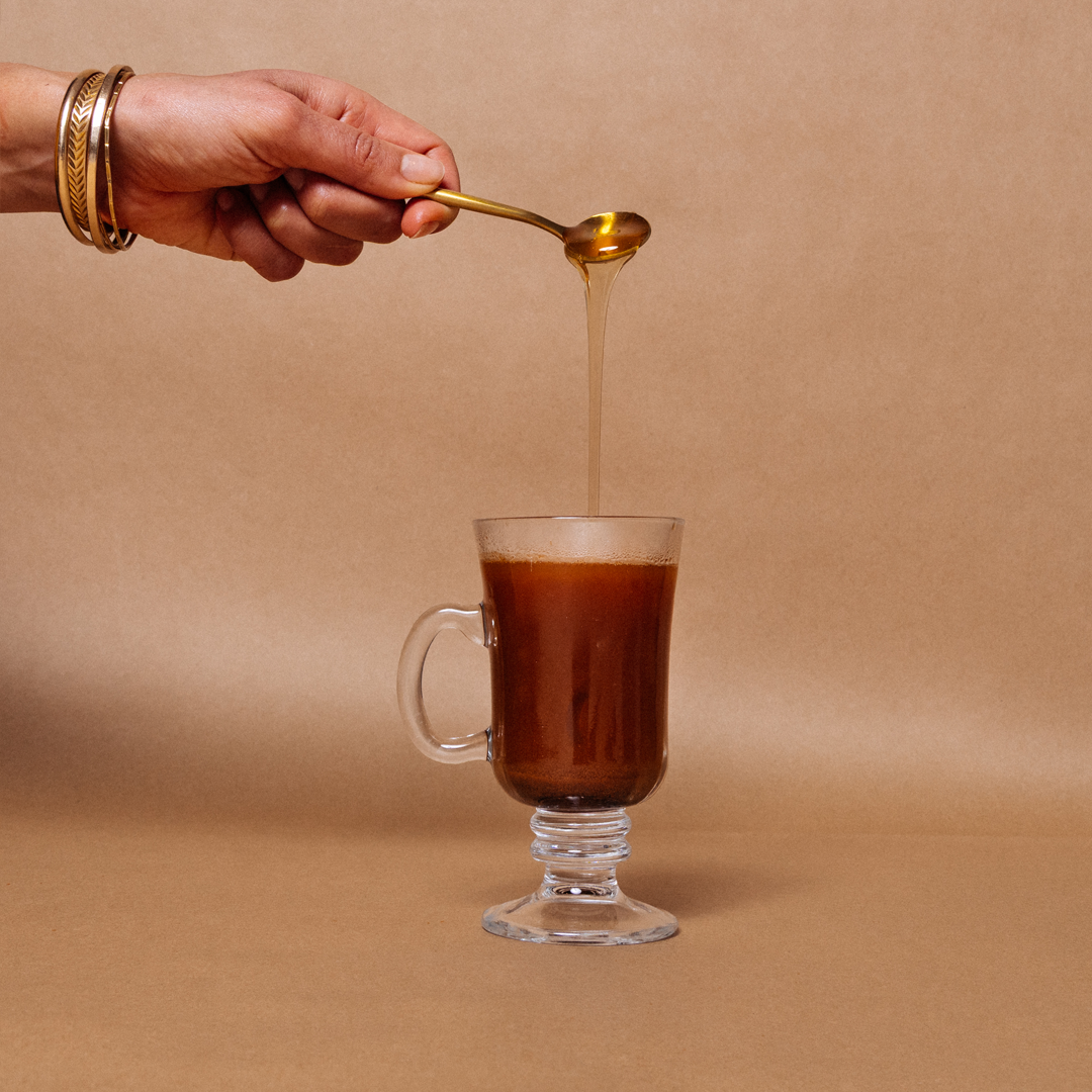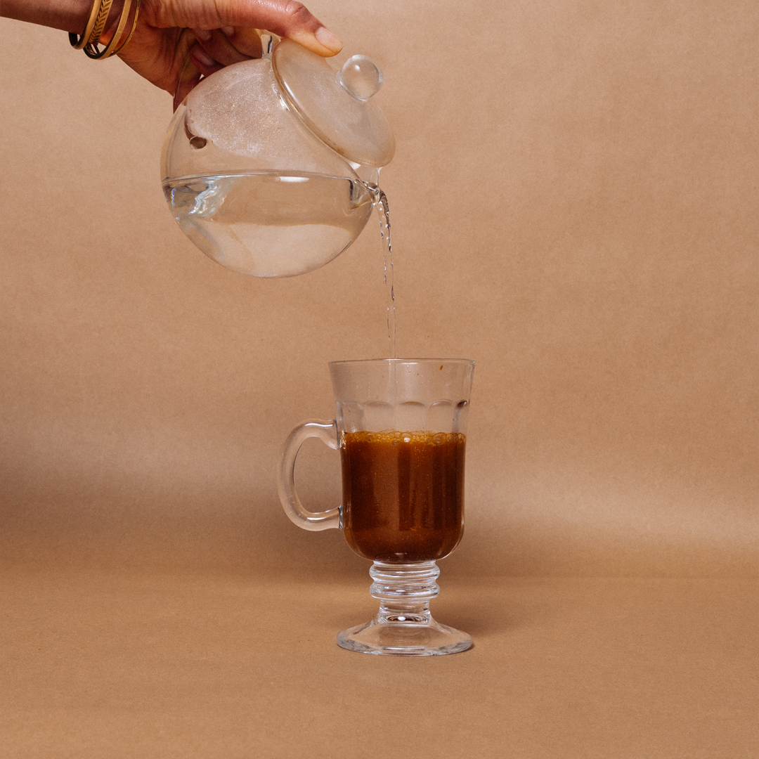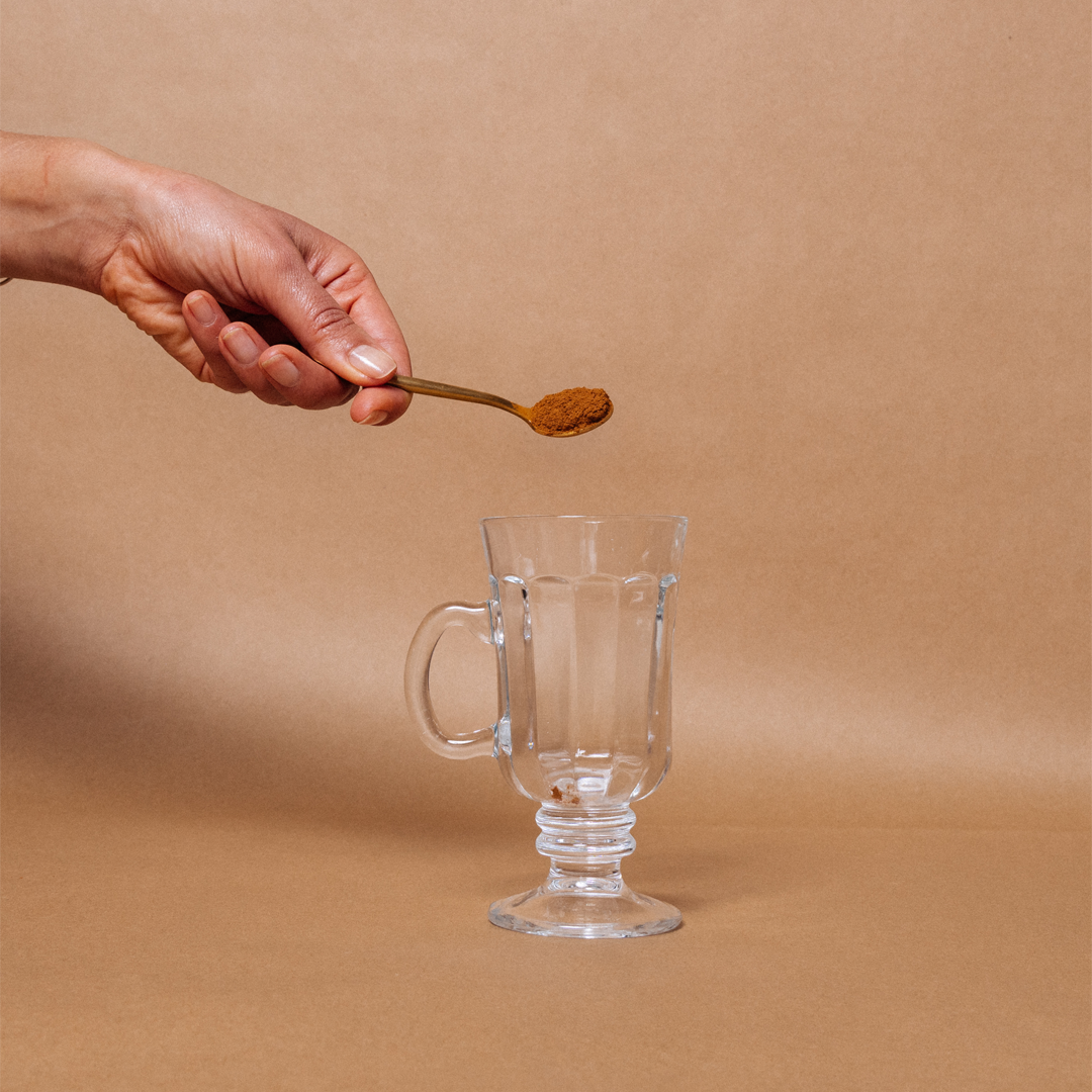 Our caffeine-free chai powder is made with premium rooibos, organic spices and feel good adaptogens. To make a cup, just add hot water and stir.